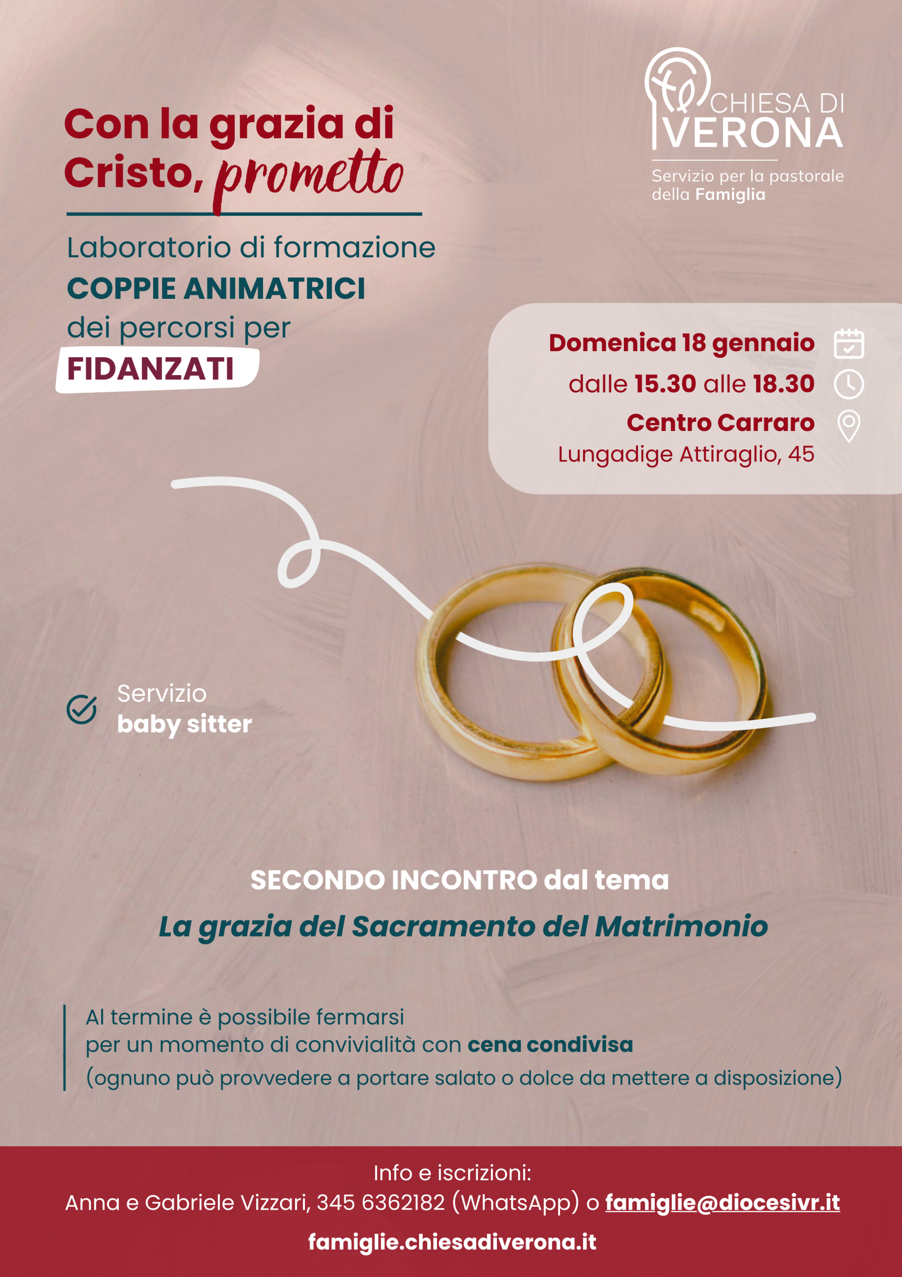 Per info e iscrizioni: Anna e Gabriele Vizzari, 345 6362182 (WhatsApp) o famiglie@diocesivr.it